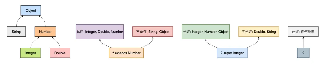为了理解通配符的边界概念,我画了一个类型层次图: