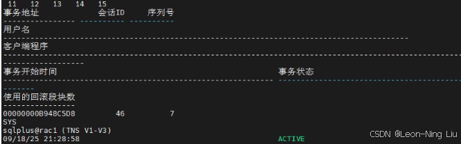 通过v$transaction与v$session关联查询,定位未提交事务: