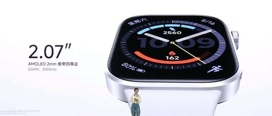 redmi watch 6 搭载 2.07 英寸 amoled 四等边屏,亮度提升到 2000 尼特,支持彩色 aod;配有铝合金中框,可选迷雾蓝、典雅黑、皎月银三款配色。