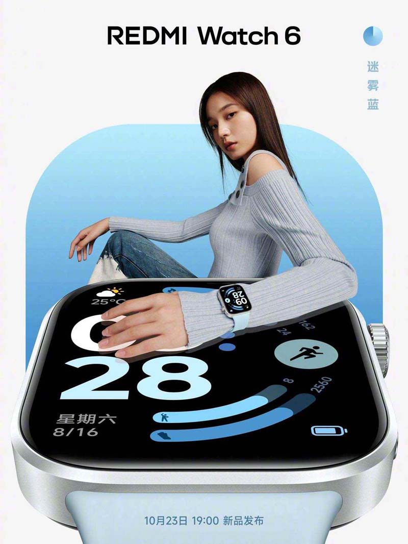 极窄大屏+24天超长续航,售价599元! 小米 REDMI Watch 6 智能手表发布