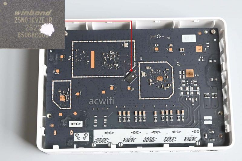 中间位置有一颗闪存芯片 ,型号是w25n01kvzeir,容量128mb。