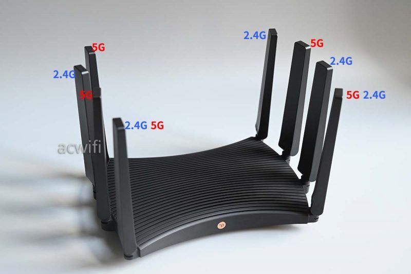 外置八根天线,2.4g和5g的天线分布情况如下: