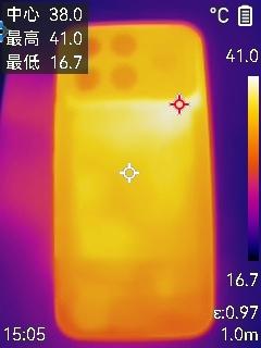背部最高温度为38.4度,与手机中心差距2.5度。