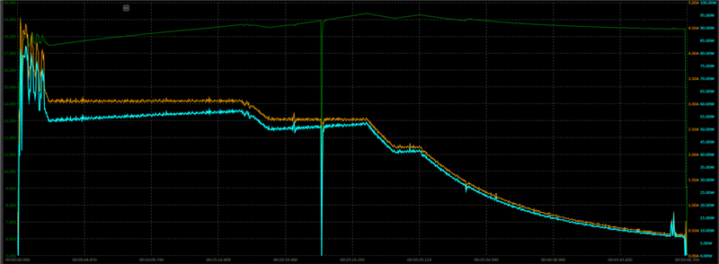 在30分20秒后开始了最后一次的连续性降流,最后50分停止充电。