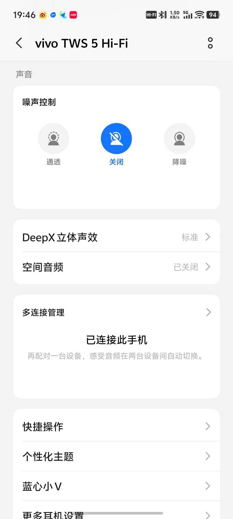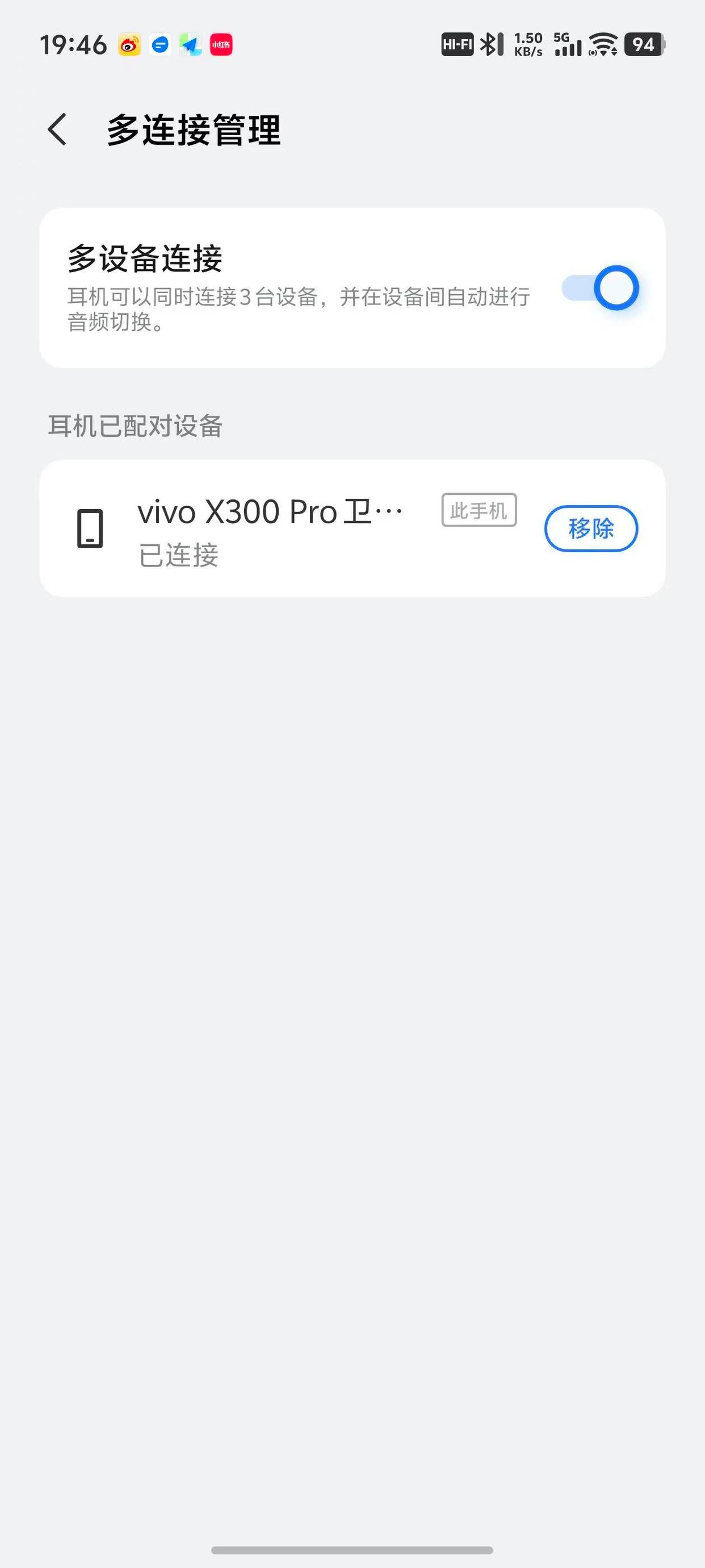 vivo tws5 hi-fi版首次支持三设备连接管理,可同时连接手机、平板、电脑三台设备,实现"谁出声就切到谁"的智能切换。对于同时使用多台设备的用户来说,这无疑大大提升了使用效率。