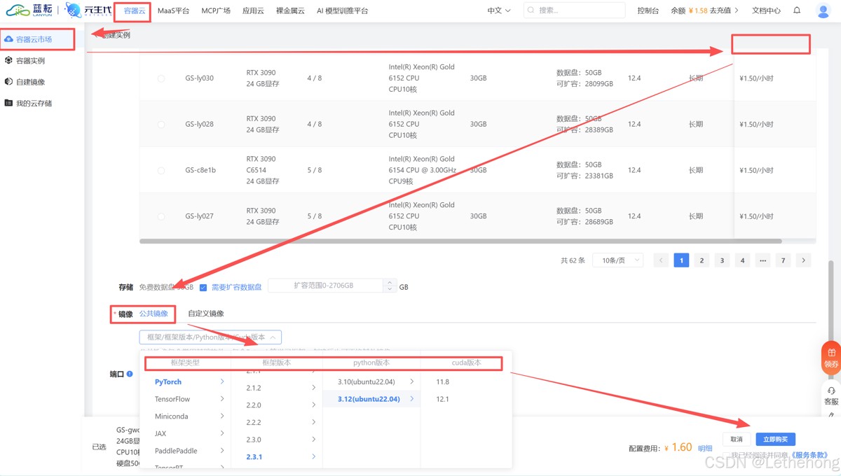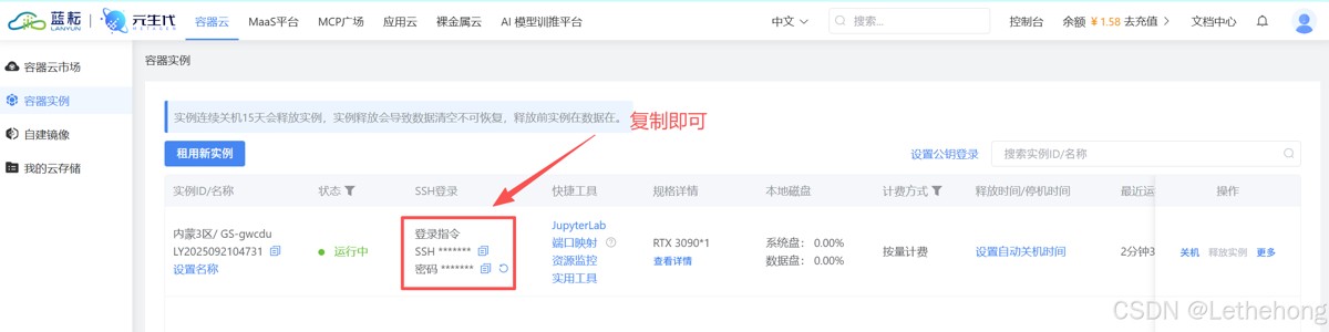 这里我们租用的是蓝耘云服务实例。