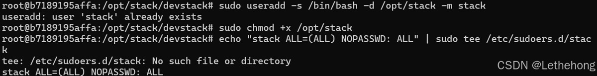 devstack 明确不支持 root 环境运行,这也是你此前被拒绝的主要原因。官方单机指南也强调了这点。