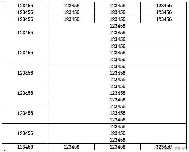</p><table style="width: 100%;table-layout: fixed;"><tbody><tr><td colspan="1" rowspan="1" width="auto" style="">第一列</td><td colspan="1" rowspan="1" width="auto" style=""><strong>第二列</strong></td><td colspan="1" rowspan="1" width="auto" style="">第三列</td><td colspan="1" rowspan="1" width="auto" style="">第四列</td></tr><tr><td colspan="2" rowspan="1" width="auto" style="">1</td><td colspan="1" rowspan="1" width="auto" style="display:none"></td><td colspan="1" rowspan="1" width="auto" style="text-align: center;">2</td><td colspan="1" rowspan="1" width="auto" style="">3</td></tr><tr><td colspan="1" rowspan="1" width="auto" style="">4</td><td colspan="1" rowspan="1" width="auto" style="">5</td><td colspan="1" rowspan="3" width="auto" style="">6</td><td colspan="1" rowspan="1" width="auto" style="">7</td></tr><tr><td colspan="1" rowspan="1" width="auto" style="">8</td><td colspan="1" rowspan="1" width="auto" style="">9</td><td colspan="1" rowspan="1" width="auto" style="display:none"></td><td colspan="1" rowspan="1" width="auto" style="">10</td></tr><tr><td colspan="1" rowspan="2" width="auto" style="text-align: right;">11</td><td colspan="1" rowspan="1" width="auto" style="">12</td><td colspan="1" rowspan="1" width="auto" style="display:none"></td><td colspan="1" rowspan="1" width="auto" style="">13</td></tr><tr><td colspan="1" rowspan="1" width="auto" style="display:none"></td><td colspan="1" rowspan="1" width="auto" style="">14</td><td colspan="1" rowspan="1" width="auto" style=""><strong>15</strong></td><td colspan="1" rowspan="1" width="auto" style="">16</td></tr></tbody></table><p>