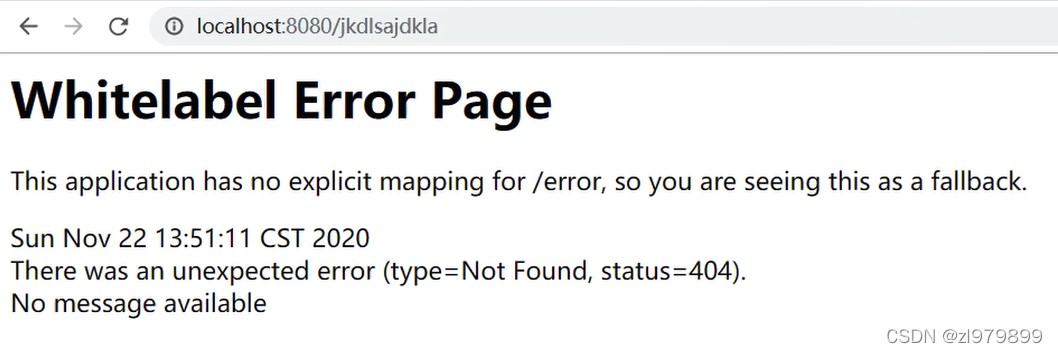 3. 对于浏览器客户端,响应一个“whitelabel”错误视图,以html格式呈现相同的数据