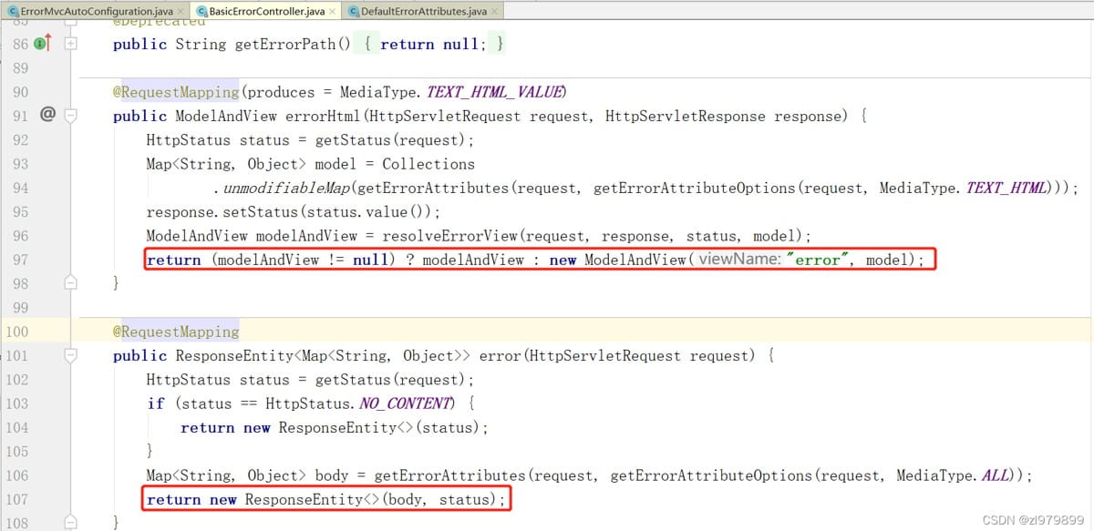 - 自己调用response.senderror(),请求会被转发给basicerrorcontroller进行处理