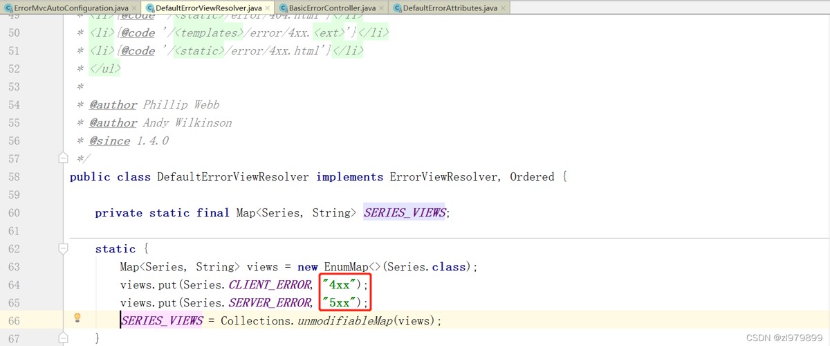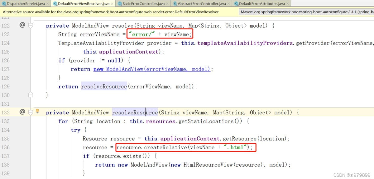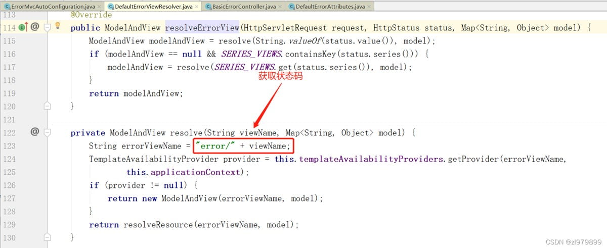 - 默认的 defaulterrorviewresolver ,作用是把响应状态码作为错误页的地址,error/500.html