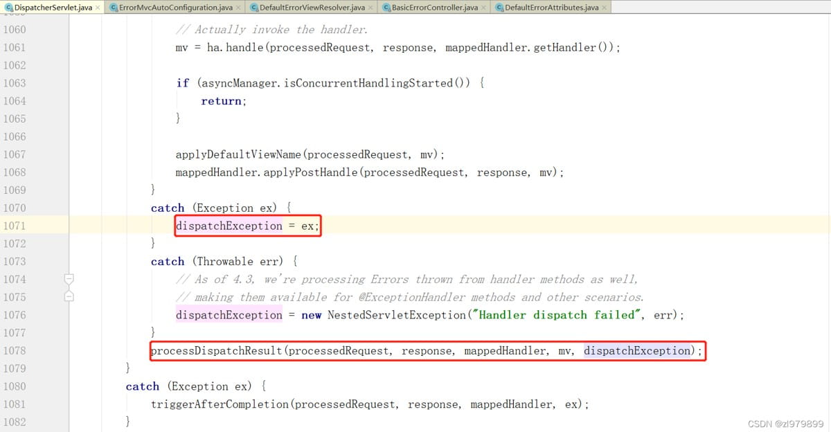 - 如果自己没有调用,并且异常没有任何人能够处理,tomact底层会自动调用response.senderror()将请求转发给basicerrorcontroller处理。