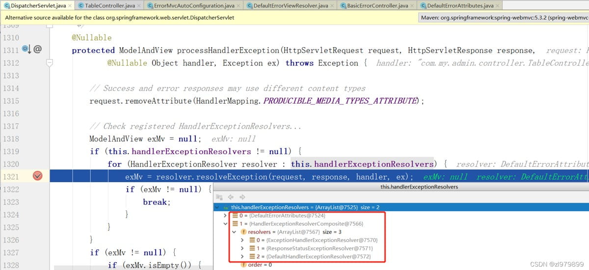 - 遍历所有的 handlerexceptionresolvers,看谁能处理当前异常【handlerexceptionresolver处理器异常解析器】