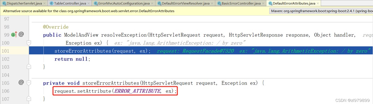 - defaulterrorattributes implements errorattributes,handlerexceptionresolver