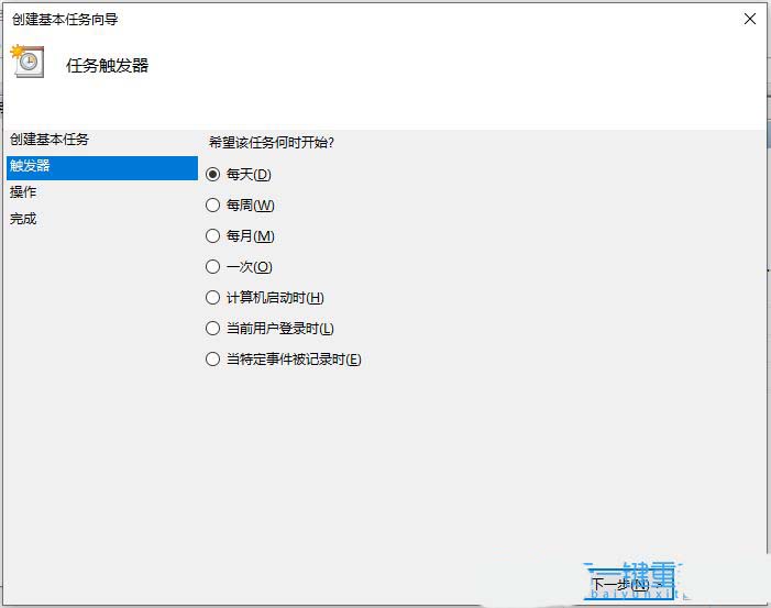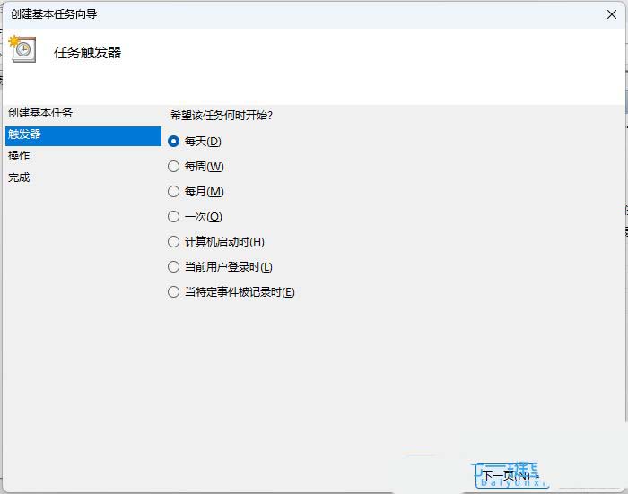 4、设置任务运行频率,选择【每天】,再点击【下一页】;