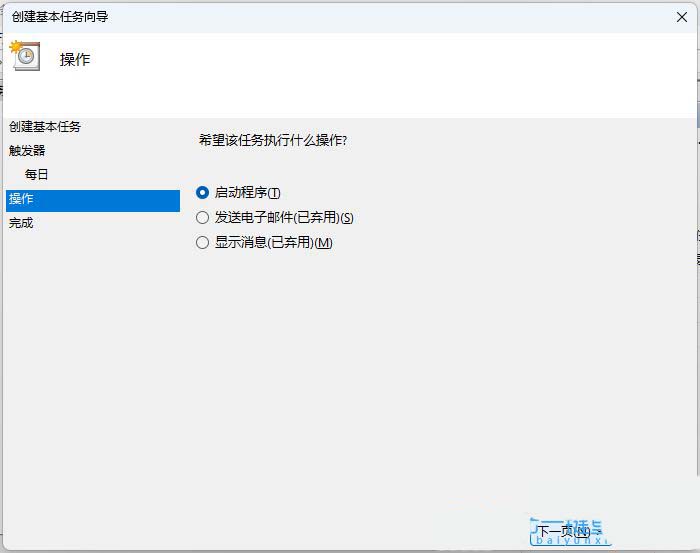 6、执行操作,选择【启动程序】,再点击【下一页】;