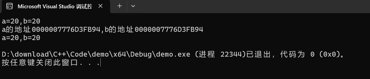 int a = 10, b = 20; int &ref = a; ref 引用 a ref = b; 这是将 b 的值赋给 a,而不是让 ref 引用 b
