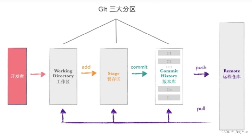 git的版本回滚其实就是回滚不同的分区,所以在聊git回滚之前我们有必要简单了解一下git的分区。