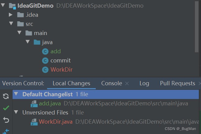 在idea中,在loacl changes中可以看到在工作区中和暂存区中的内容: