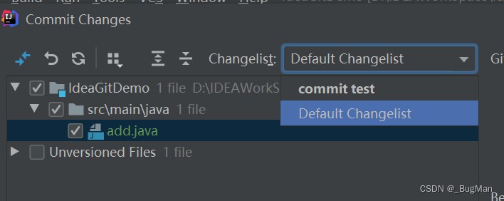 变更列表有什么用喃?其实变更列表可以把它视为一个命名空间,就是用来做资源隔离的,在进行commit的时候需要下拉选择不同的变更列表来进行提交: