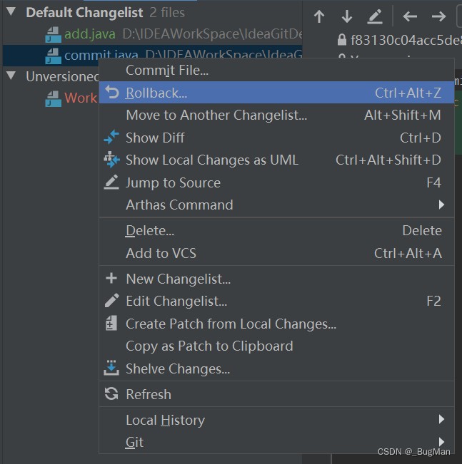 新增的文件直接删除即可,如果是修改的文件,使用roll back来回滚。在local change里面,选择想要rollback的文件即可: