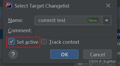 需要注意的是undo commit只能从最后一次commit开始回滚,undo commit后会要求选择一个变更列表来存放回滚后的内容,可以自己新建一个,比如此处的commit test,也可以在下拉框里选择一个已经存在的,如果是自己新建的变更列表,勾选了set active选项,后续的变动也会存放到该变更列表中:
