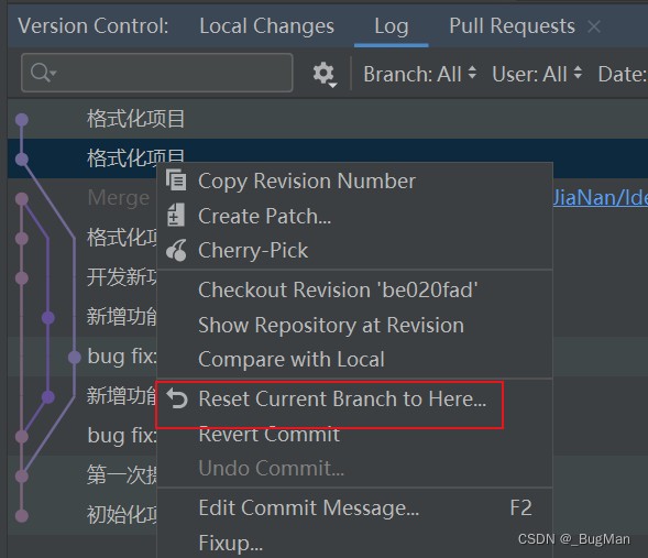 比如commit的message写错了,查看log的时候才发现,比如不小心将本地还没有开发完成的代码推送到远端仓库了,由或者合并冲突或者分支的时候合并错了......等等这些情况都要我们对远端仓库的代码进行回滚。