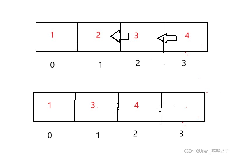 indexof(toremove)查找要删除的元素,如果index == -1,则没有你要删除的元素,如果有,进行覆盖删除,让后面的元素逐一向前移动一个位置直到你要,直到覆盖掉你要删除的元素,最后将有效元素usedsize–