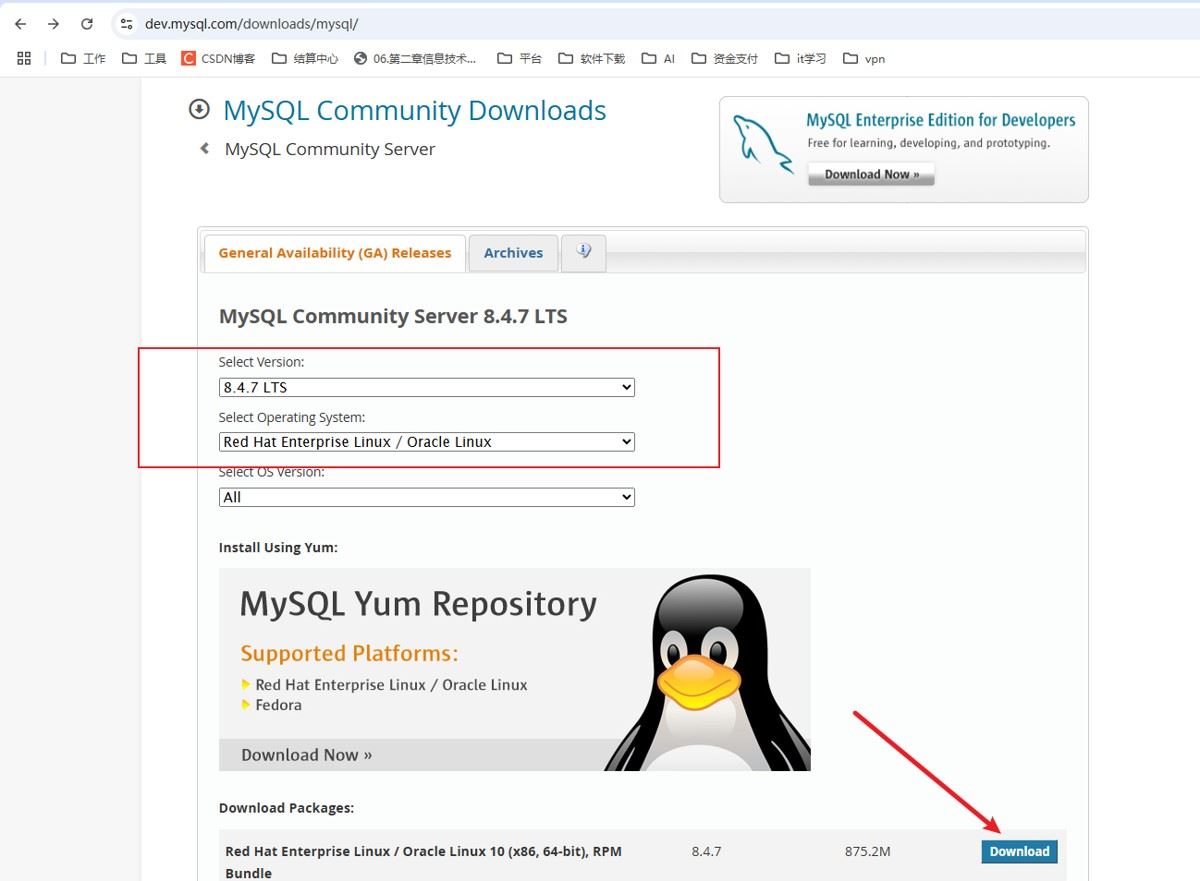 - 安装包下载地址:https://dev.mysql.com/downloads/mysql/