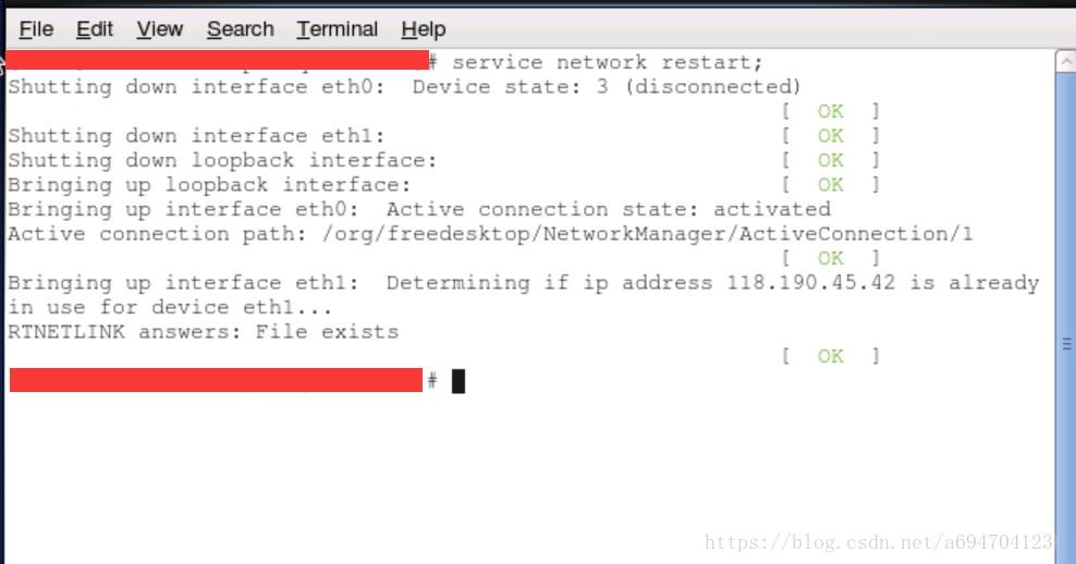 3、这样就完成了用service network restart命令重启网卡的操作。