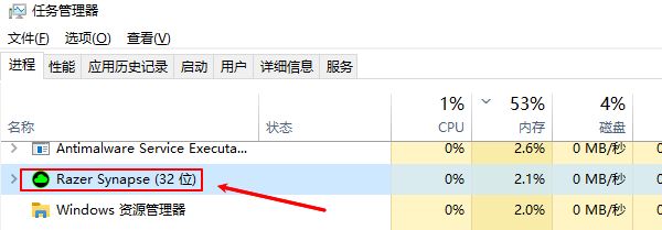 检查后台进程:打开任务管理器(ctrl+shift+esc),查找“razer synapse”进程,结束后重新启动软件。