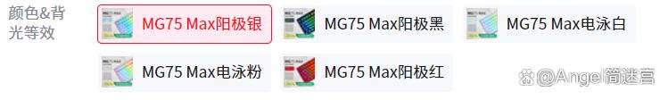 mg 75 max 作为 mg 75 系列的顶配型号,四百出头的价格完全值得入手。但是,我可能会更推荐pro。外观方面提供5种配色:阳极银、阳极黑、电泳白、电泳粉,还有阳极红。其中阳极黑、阳极银售价