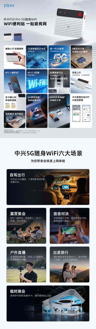 5G/双网一键切换! 中兴 F50 Pro 随身Wi-Fi发布