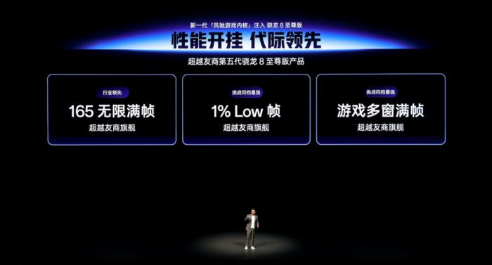 搭载了骁龙8至尊版移动平台,最高配备16gb lpddr5x ultra内存和 1tb ufs 4.1存储,同样拥有全新一代“风驰游戏内核”,以及全新“冰河散热系统”、全新「电竞三芯」,由此带来了更稳定、高性能的游戏体验,包括60/90/120/144/165全帧率无限满帧、行业最强的1% low帧表现。