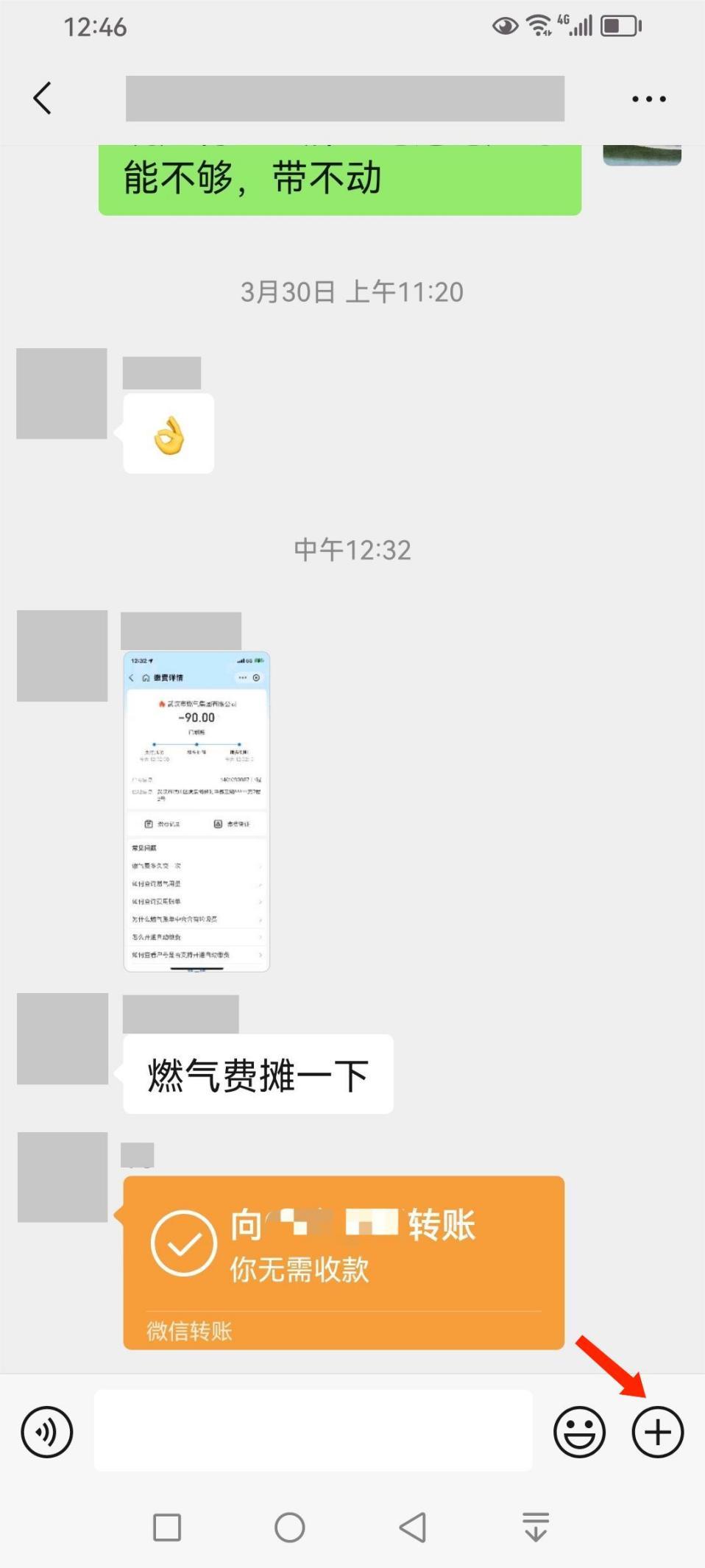 第1步:在微信群聊窗口点击右下角的“+”按钮;