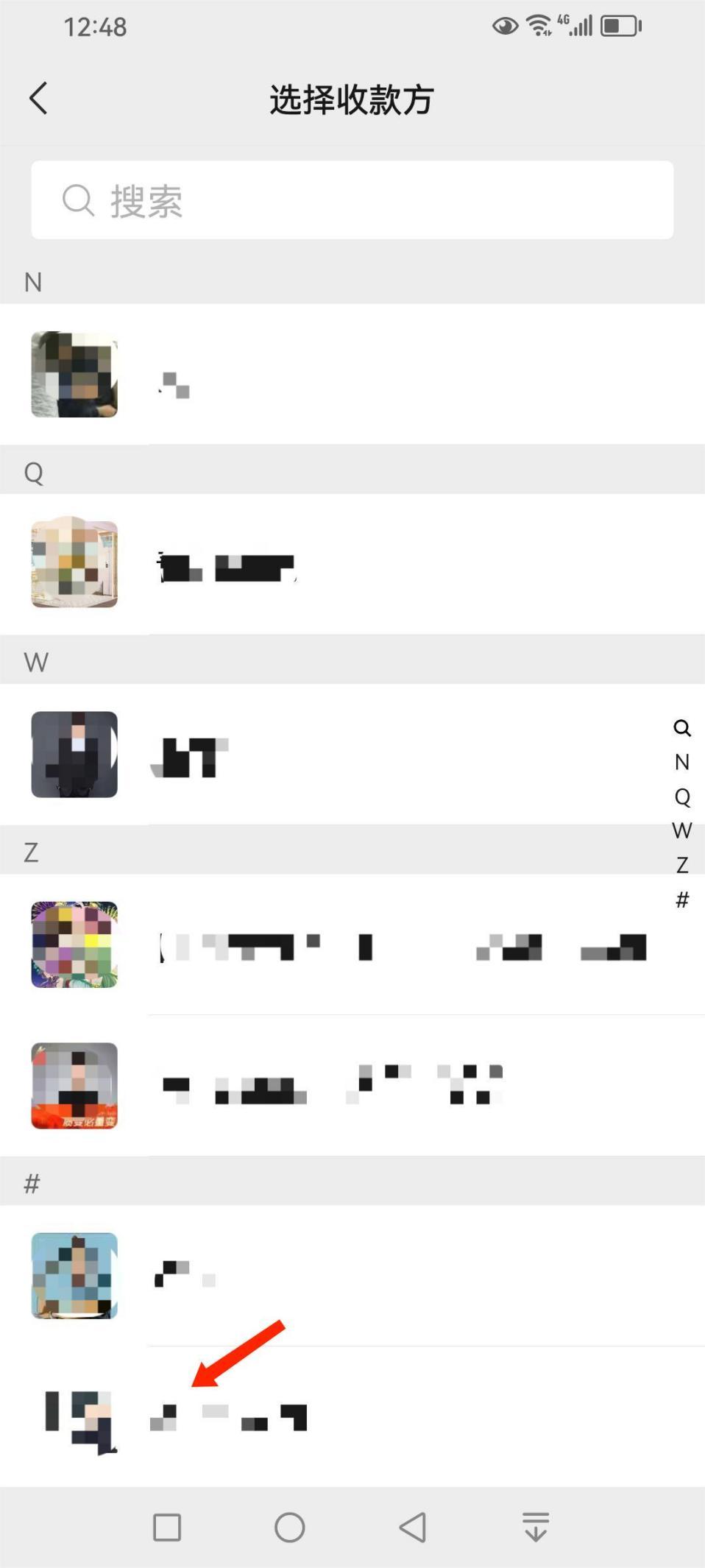 第3步:在【选择收款方】界面中选择要转账的对象;