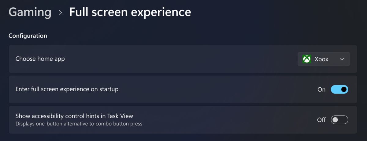 在游戏体验方面,本次预览版开始向微星 claw 等更多设备推送更新,让其可以享受华硕 rog ally 系列上的全屏游戏体验(fse)。该模式提供类似游戏主机的无干扰界面,并与 xbox pc 应用配合,可优化系统资源。