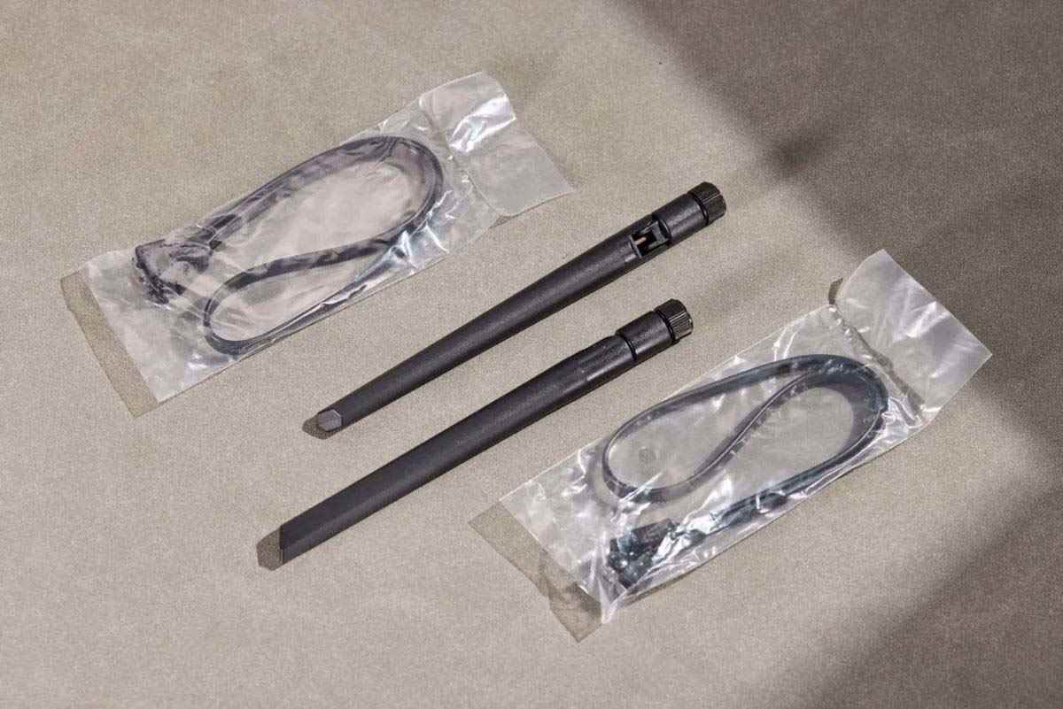 配件方面,包装内附有 1 对 wi-fi 6 天线、2 条 sata 供电线、产品说明书等。