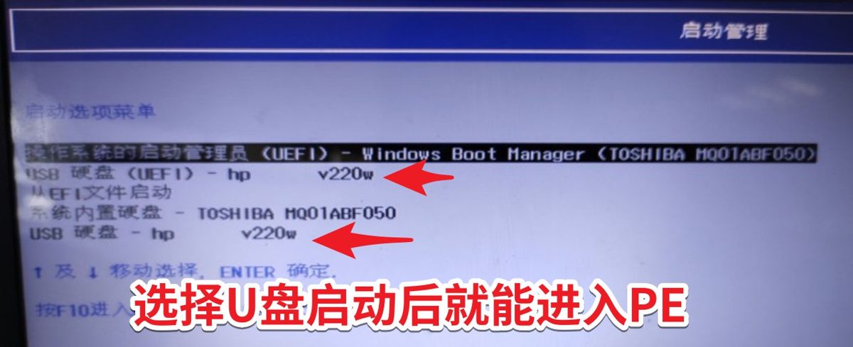 图:选择u盘启动后进入pe的前提是u盘质量靠谱并且安装了pe