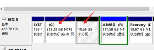 注意:因为扩展卷只能扩展相邻的卷,因此,此方法需要删除 d 盘,请提前备份数据。