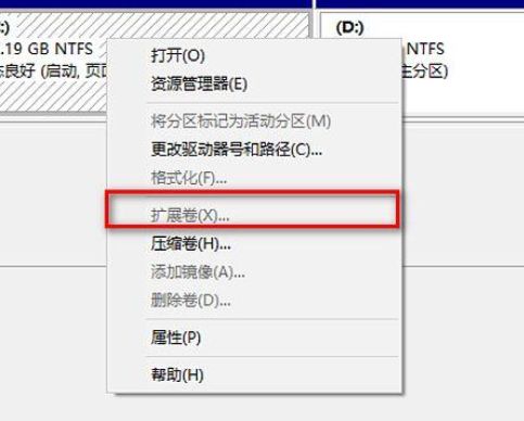 4.压缩完空间之后,需要删掉 d 盘(请提前备份数据),然后再 c 盘上单击右键“扩展卷”即可对 c 盘完成扩容。(由于小易的没有做实际操作,所以是灰色)