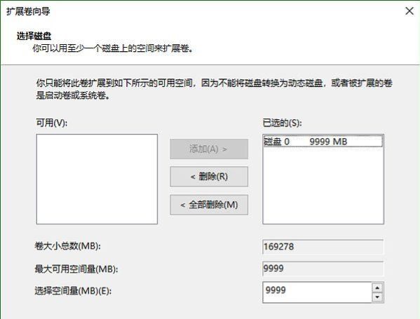 6.选择需要扩容的磁盘,填写空间大小,单击“下一步”。