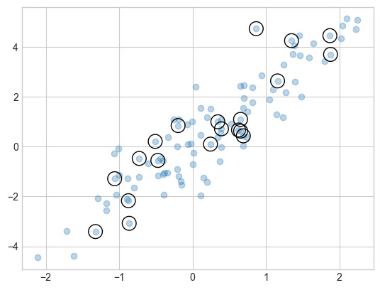 现在,为了查看哪些点被选中了,我们将在被选中的点的位置上叠加大圆圈(见下图):