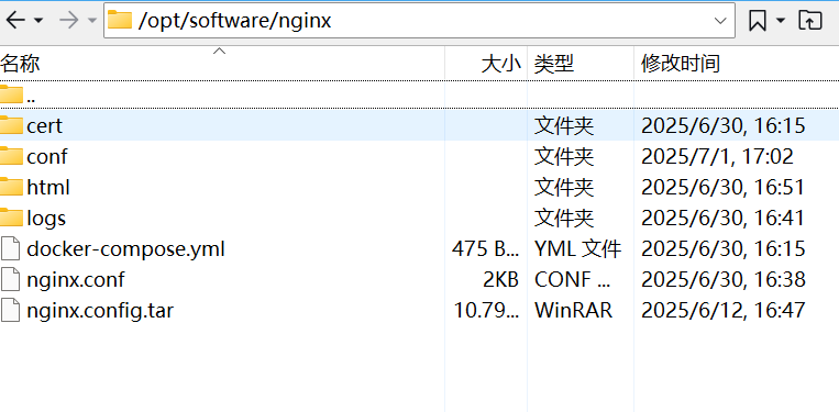 把nginx.config.tar 上传到:/opt/software/nginx ,在执行tar -zxvf nginx.config.tar