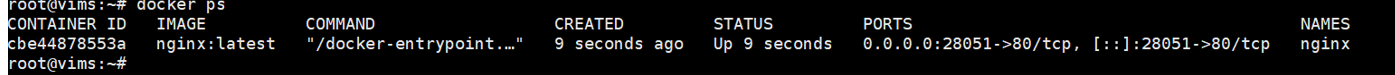 docker run -d \ --name nginx \ --restart always \ --privileged \ -p 28051:80 \ -v /opt/software/nginx/conf:/etc/nginx/conf.d \ -v /etc/localtime:/etc/localtime \ -v /opt/software/nginx/logs:/var/log/nginx \ -v /opt/software/nginx/html:/usr/share/nginx/html \ -v /opt/software/nginx/nginx.conf:/etc/nginx/nginx.conf \ -v /home/data/nignxstatic:/home/data/nignxstatic \ nginx:latest