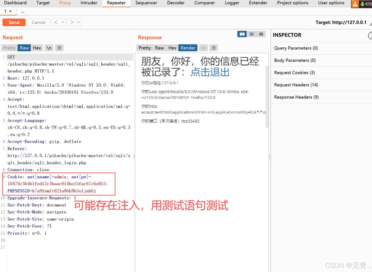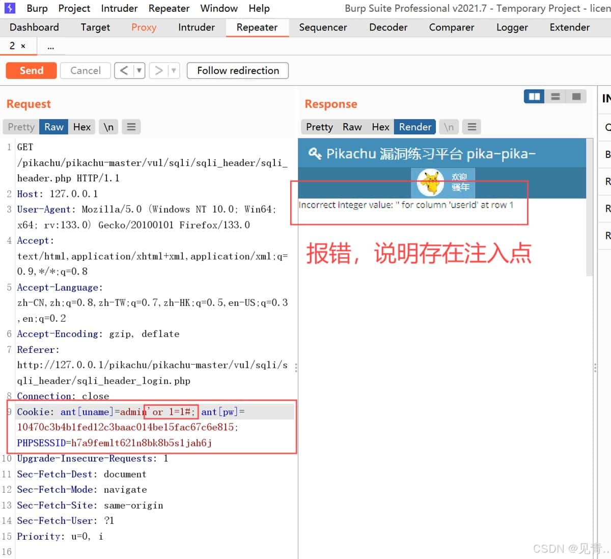 若测试后没有报错,但也没看到用户表中的数据,页面渲染还是原先的页面,可能是因为服务端那边拿到数据之后,只是在数据库中查询了一下有没有admin'这个用户就结束了,没有把整个表里面的查到的数据展示给你看。