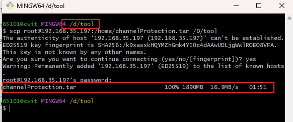 scp root@192.168.35.197:/home/channelprotection.tar /d/tool