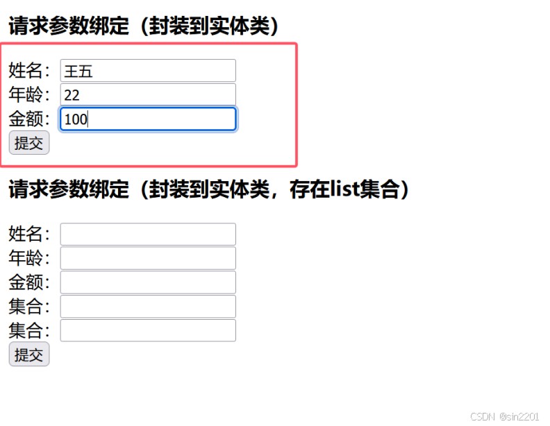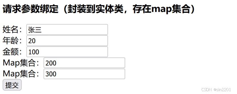 <h3>请求参数绑定(封装到实体类,存在map集合)</h3>