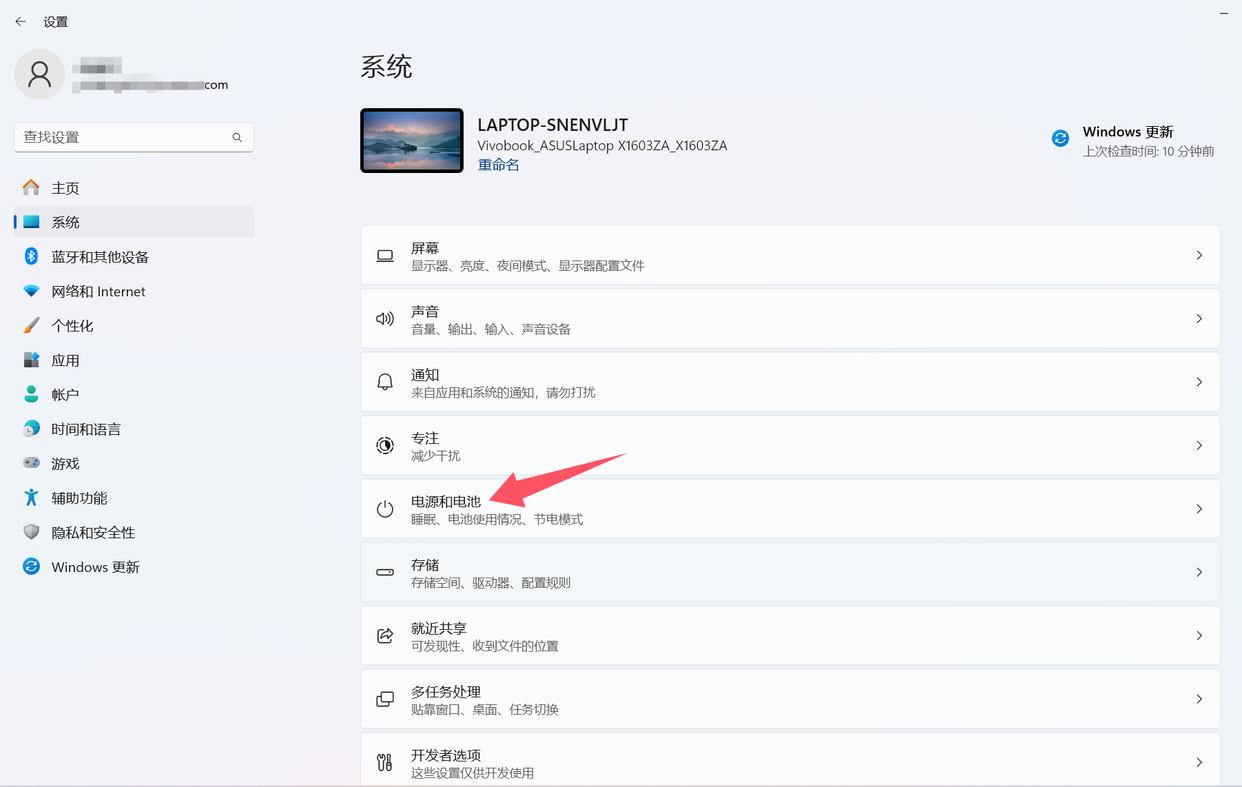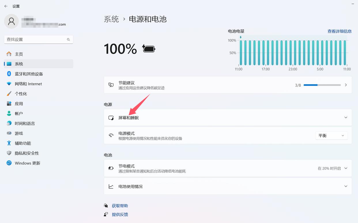 在【电源和电池】界面点击【屏幕和睡眠】。